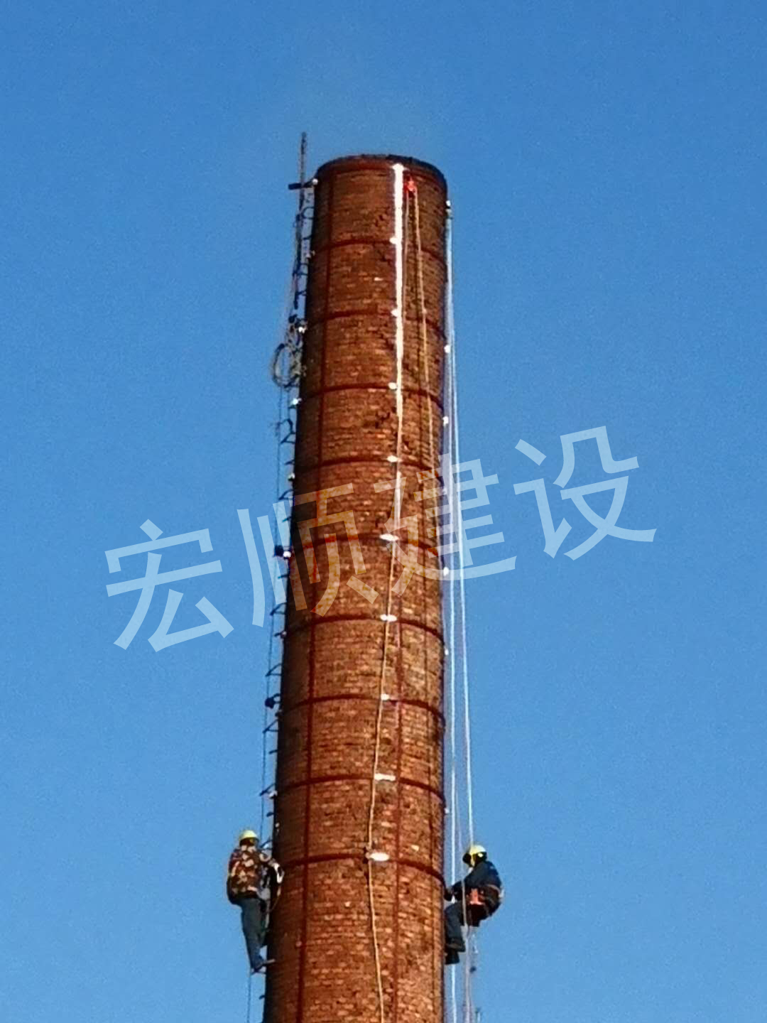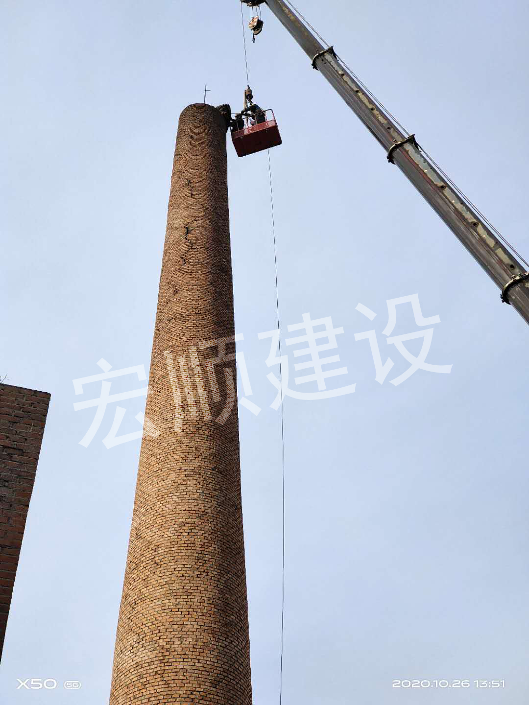 宏順建設最新承接了齊齊哈爾當地一個鍋爐房煙囪頂口裂縫需要拆除部分后加固,我們施工前做了這些準備: